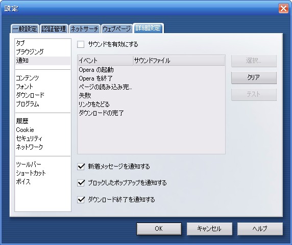 設定 ウィンドウの 詳細設定 タブの 通知 を選択し、